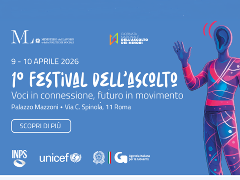 Il 9 e 10 aprile 2026, l'Accademia INPS di Roma apre le porte alla prima edizione del Festival dell’Ascolto. L’evento, che celebra la seconda Giornata nazionale dell’ascolto dei minori, nasce per iniziativa del Viceministro del Lavoro e delle Politiche Sociali, Maria Teresa Bellucci, in sinergia con INPS, UNICEF e Agenzia Italiana per la Gioventù.
